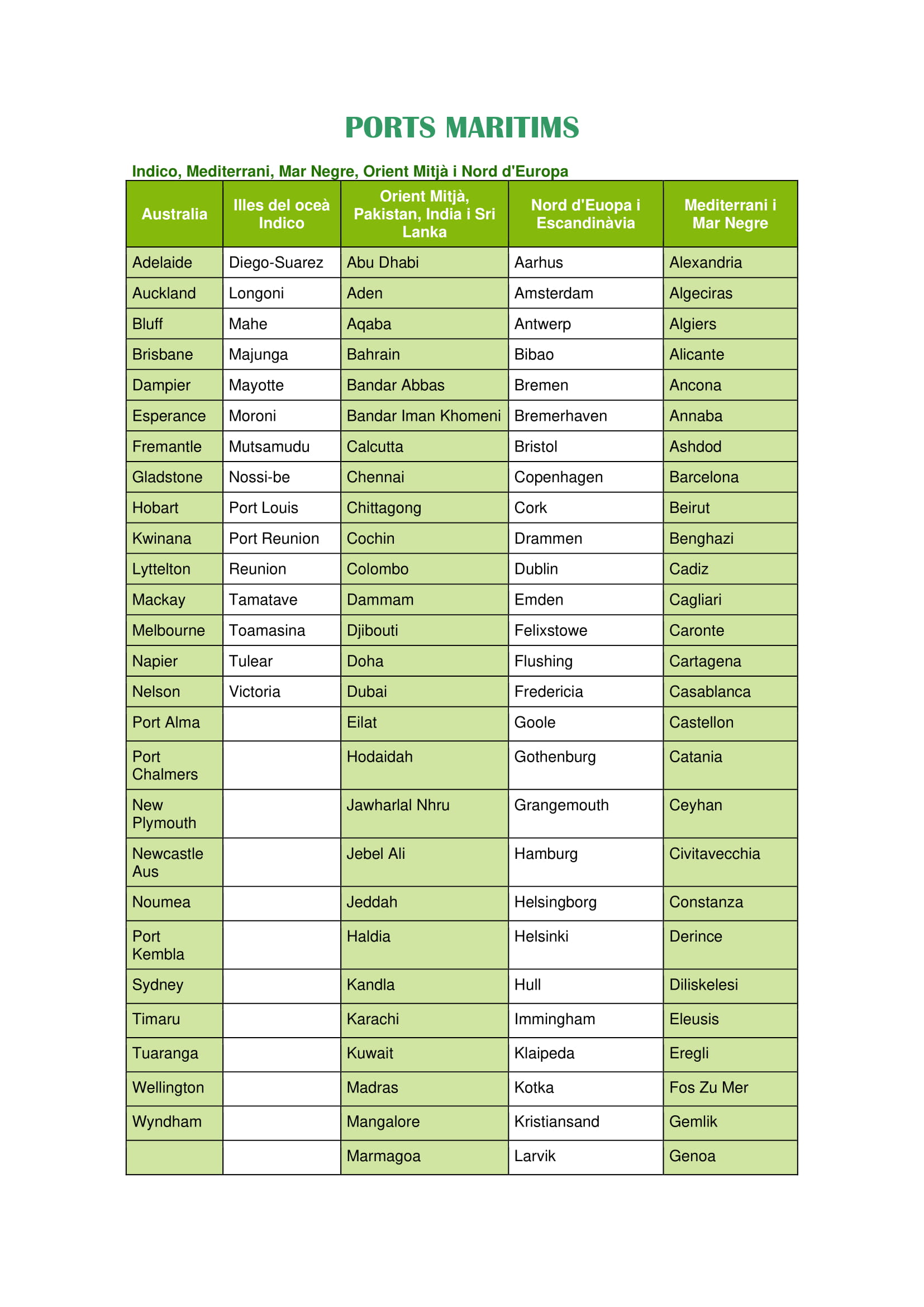 Des d'aquest apartat pot obtenir un llistat complet llest per imprimir de tots els ports del món. Plaza Forwarding disposa d'enllaços a cada un d'ells.
