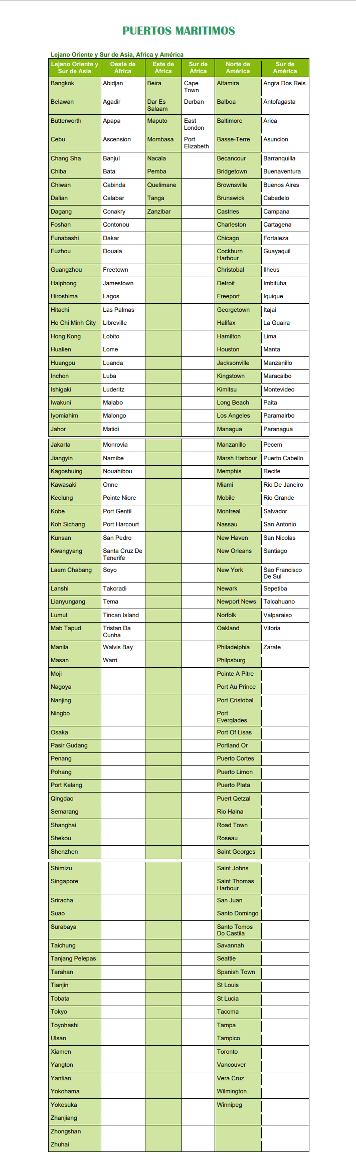 Desde este apartado puede obtener un listado completo listo para imprimir de todos los puertos del mundo. Plaza Forwarding dispone de enlaces en cada uno de ellos.