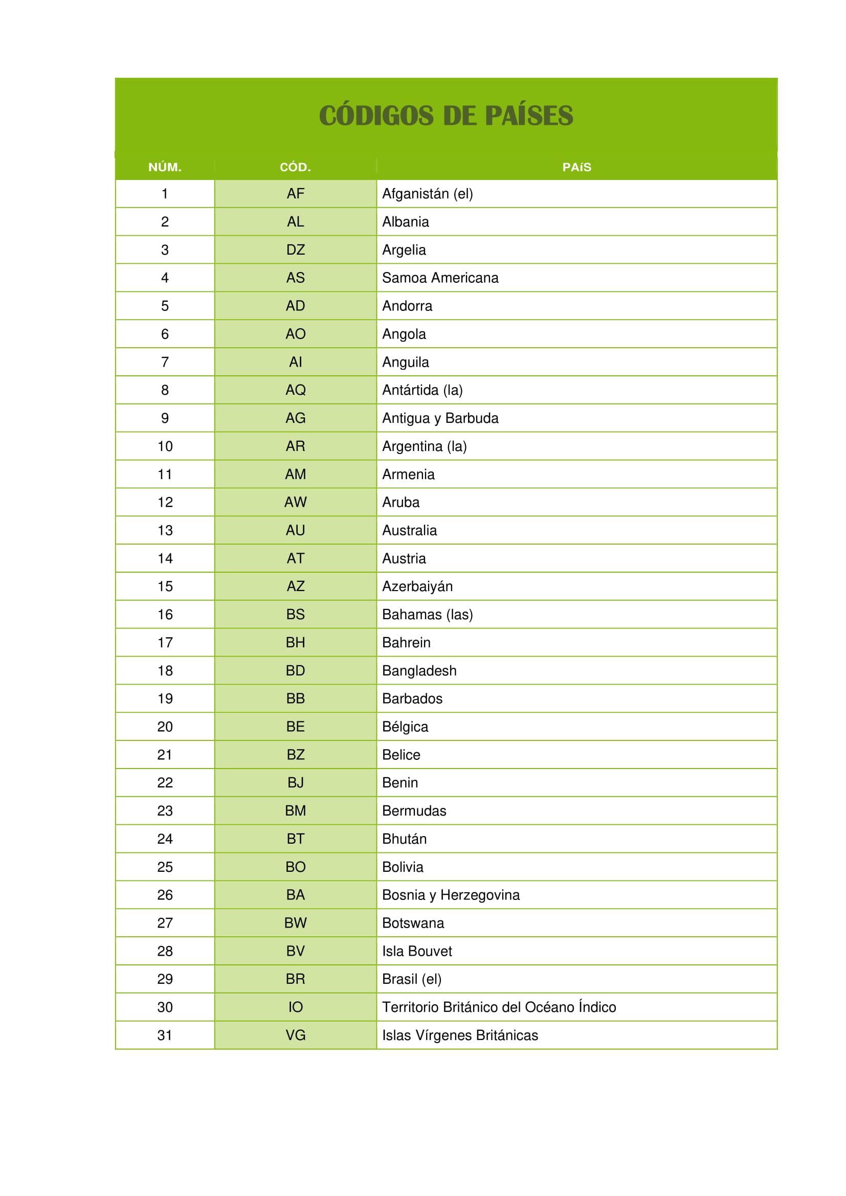 Códigos de Países:
